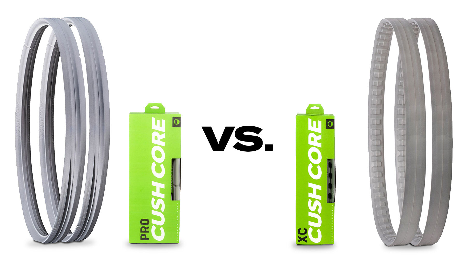 CushCore recommends using CushCore XC in tires that are 2.4” or narrower, which leaves out many popular 2.5” - 2.6” trail tires. The insert also does not hug the rim as tightly, or go as high up the tire sidewall as CushCore Pro, so there is slightly less burp protection and cornering support.